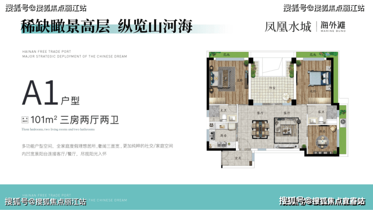 面积:101平三房两厅凤凰水城海外滩售楼处电话✅:400-982-8802