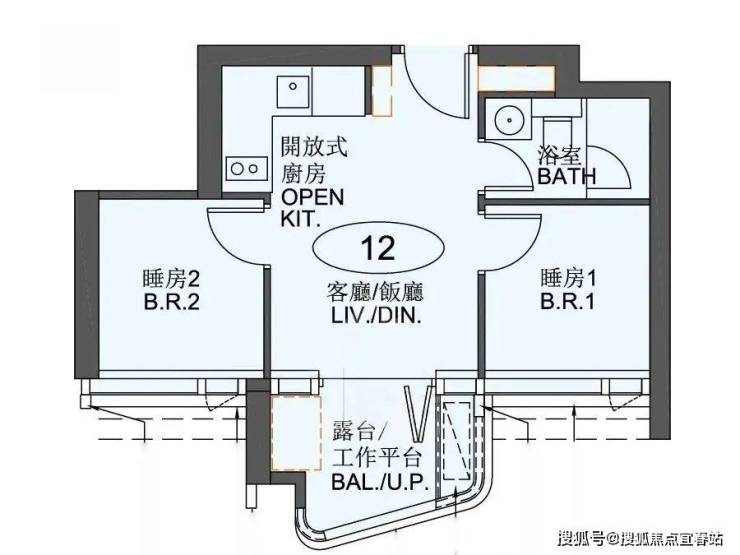户型:开放式、1-3房