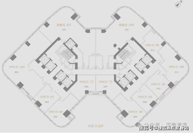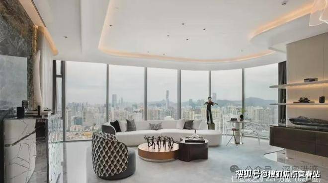 方胜纹双核心筒的设计使得整栋建筑更加高效和私密,并实现了双专梯电梯入户,为塔尖人群高效的工作和私密的生活而服务。转角处曲线设计,拓宽了整个建筑界面,使得建筑拥有270°转角无柱开放式观景视野。是塔尖人群拥揽深港的极佳观景台,足以盛放您帷幄城市的雄心。