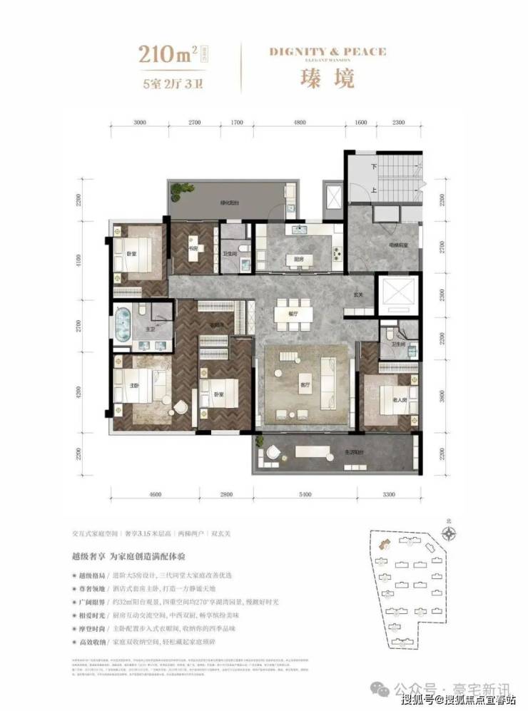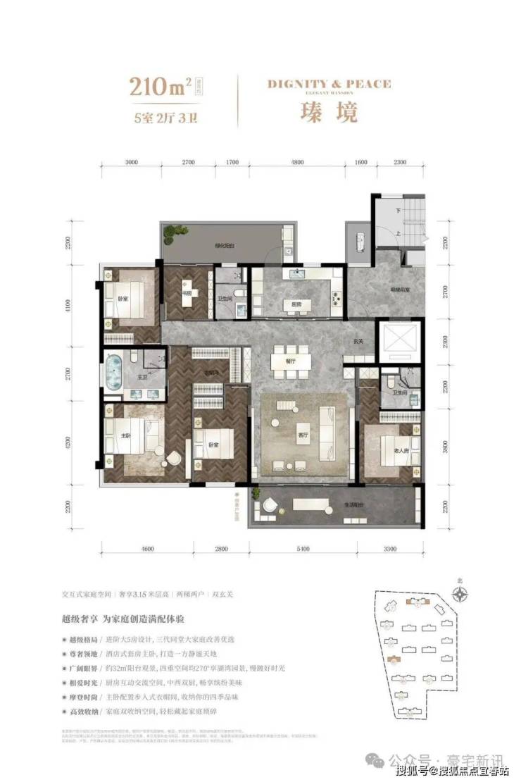 【瑧境】5室2厅3卫户型,建面约210㎡