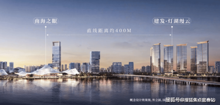 建发灯湖缦云的稀缺性,始于它对“不可复制资源”的绝对占有。项目位于千灯湖黄金S湾核心,与双万亿CBD隔江对望,直线距离约400米处便是“南海之眼”地标集群(规划中的大剧院、博物馆、体育中心)。