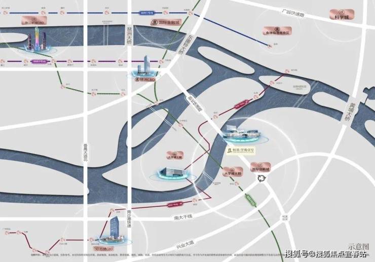 国际创新城,位于第三中轴(活力创新轴)与第四横轴(南大干线商脉)交汇点,未来发展前景显而易见。