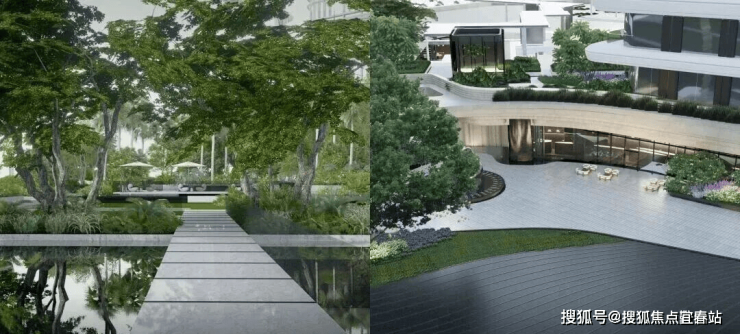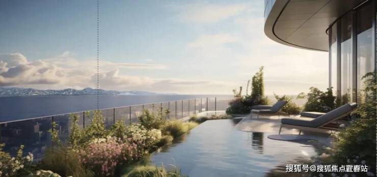 立面上走的是现代简约豪宅路线,外立面采用曲面玻璃幕墙搭配金属材质,也是为了更好的放大景观资源价值。
