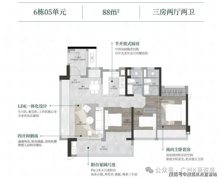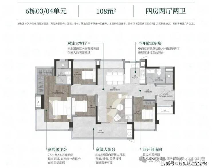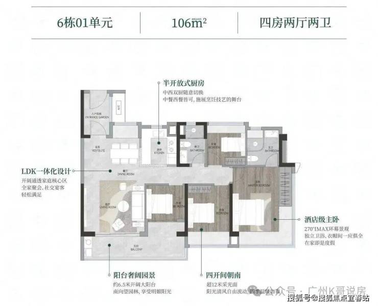 按照规划,项目商品房位于地块西侧,包括6栋层26-33层住宅,以T5风车型全南向户型规划布局。容积率3.4,计容建面9.86万㎡,得房率基本超100%,拥有1.8万㎡围合式大园林及1.5万㎡红线内外绿化与江景资源,致力打造成白鹅潭品质舒居标杆。