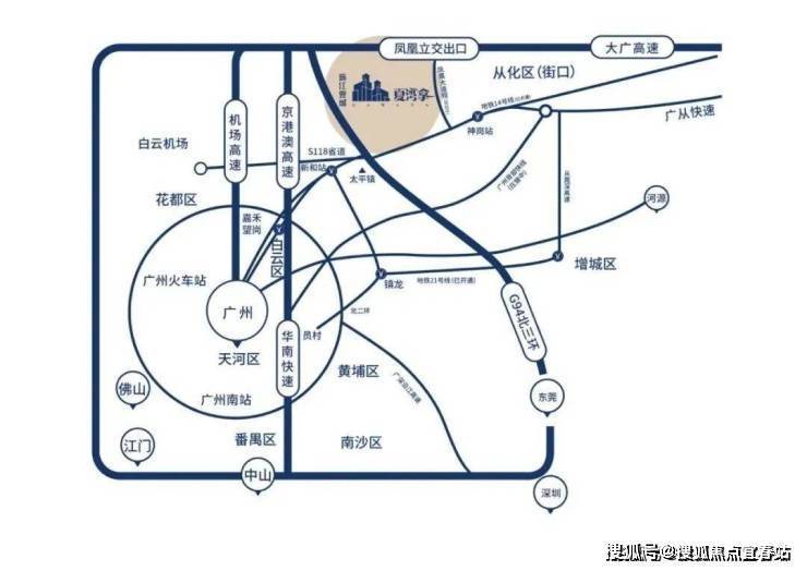 ①广从快速路双向六车道无红绿灯,自驾40分钟达珠江新城;