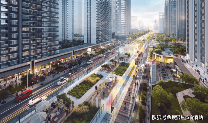 五大主题花园组团立体交织——碧水园的镜面水景使夏季体感直降4℃,趣味盎然的童趣园预计日均吸引约300组亲子家庭,绿茵园约500㎡星空草坪将以小红书网红打卡地为设计路线。下沉商业庭院以音乐喷泉、中央绿地、景观雕塑、休闲广场为一体,构筑美好社区生态场景,一站式吃喝玩乐购!