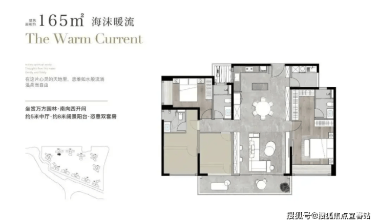 163-165㎡4室2厅3卫空间更开阔,动静分区清晰,主卧带独立卫浴,私密性好,适合改善家庭;