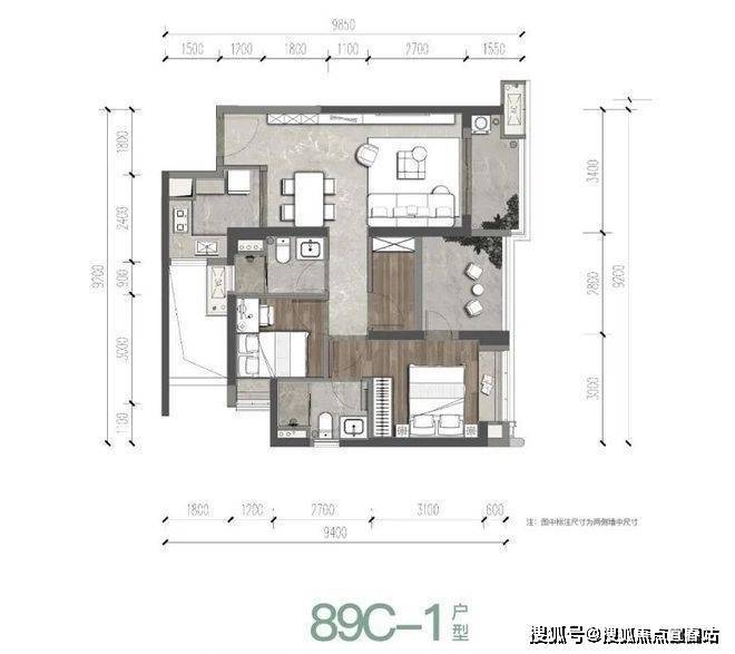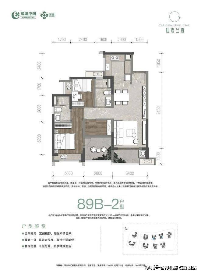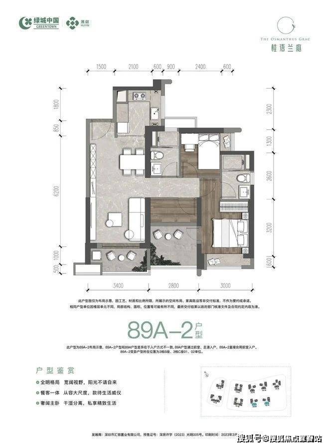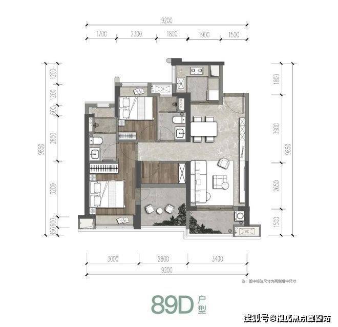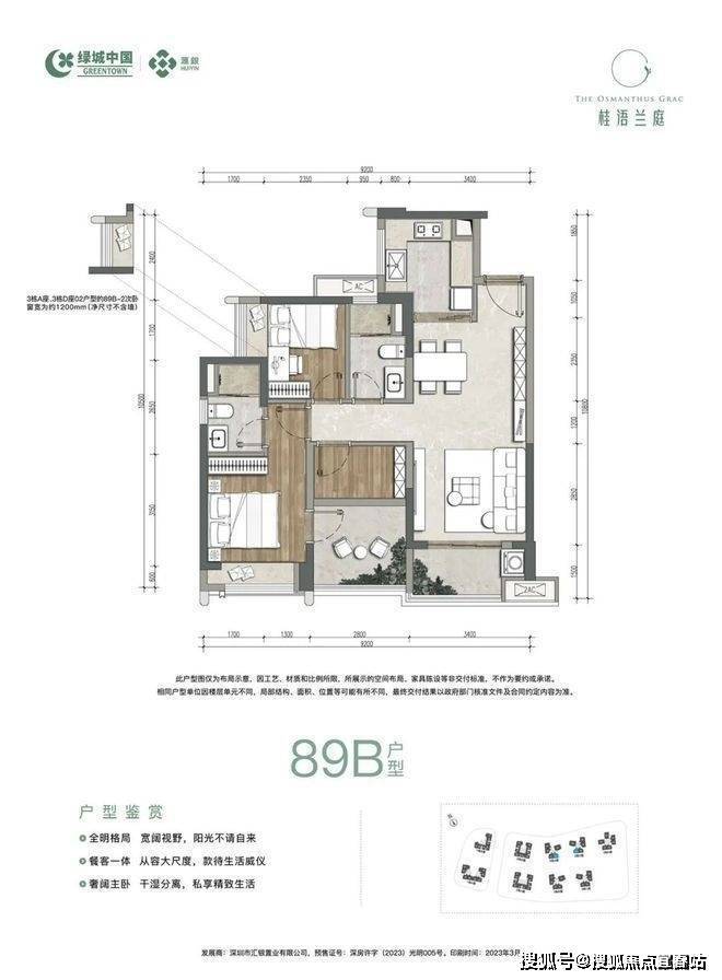 得房率较高:以89㎡的户型为例,不包含赠送面积的前提下整体得房率约78.85%,若加上赠送面积,整体得房率可达约90%。
