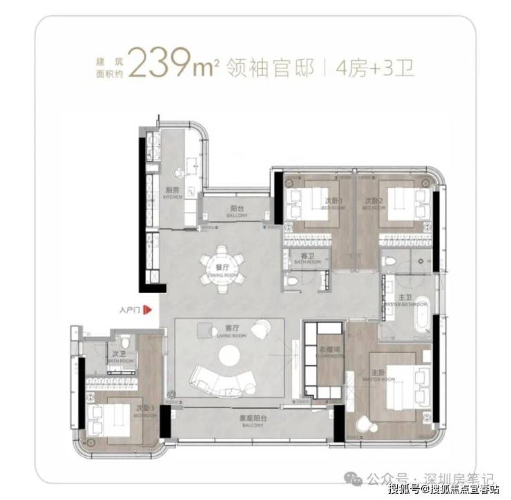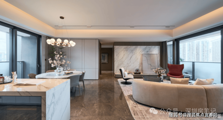 在产品打磨上,项目主推建面约111至125平方米的精装三至四房,以及建面约165至290平方米的70年产权揽海公寓,其中住宅层高均达3米以上、大户型更享3.3至3.5米的奢阔尺度-2-5。2026年一季度,项目以3.98亿元成交金额位列福田区普通住宅预售项目榜首,1-3月累计网签24套,成交均价10.53万元/㎡,套均价1657.24万元-1。目前项目主力在售02地块T6栋建面约111-125㎡全能三至四房,以及03地块建面约253㎡、270㎡湾芯现房大宅,公寓产品约165-290㎡同步热销中,折后单价8.5万元/㎡起-4-8。户型设计上亮点纷呈——111㎡三房采用LDKB一体化设计,东南朝向,部分户型可直揽城市景观与海景;125㎡四房提供横厅与竖厅多种选择,其中西南朝向户型可俯瞰红树林湿地与深圳湾海景;253-270㎡大平层则拥有约270°环幕视野,南向无遮挡俯瞰红树林自然保护区与香港米埔湿地-5-8。