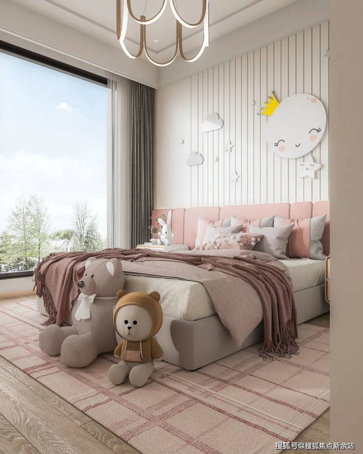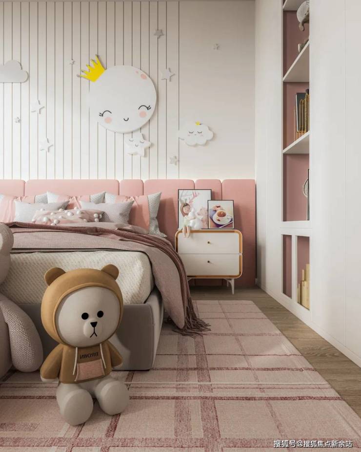 软装将它所特有的温度传递至卧室之中,不同的空间便有了不一样的温暖,女儿房以粉色为主色调,整个空间都弥漫着浪漫的气息。
