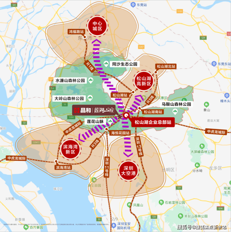【交通要冲】——三轨交汇之地,松山湖企业总部站TOD核心区域,交通网络四通八达。