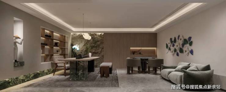 地下室两层充分利用,将阳光引入地下,绿意盎然,采光通透,整个空间感以及仪式感十足。B1B2层采用挑空客厅的设计,增加室内面积的同时,综合了更多休闲区功能。
