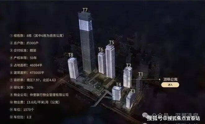 总建筑面积47.5万㎡,是集寰球商务、高端公寓、奢华酒店、高端商业于一体的高端城市综合体,特别重要的是还带深圳湾中小学学位。