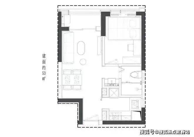 目前在售的商务公寓户型包括44㎡的1房、53-56㎡的1房以及63-65㎡和71㎡的2房2厅1卫。