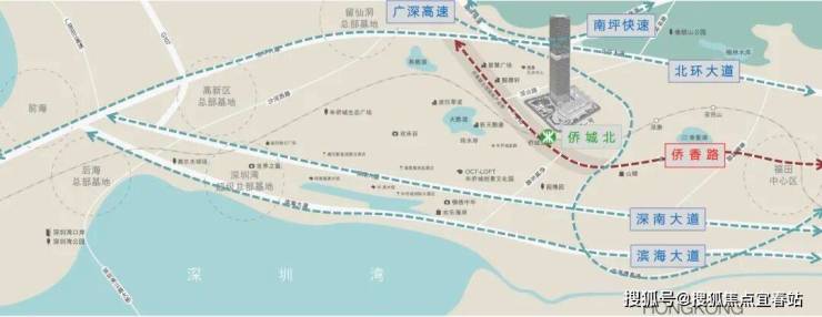 多维交通体系 距侨城北地铁口仅3分钟路程,15分钟内即达北环立交、广深高速,通往福田CBD、前海中心、宝安机场及珠三角各方向