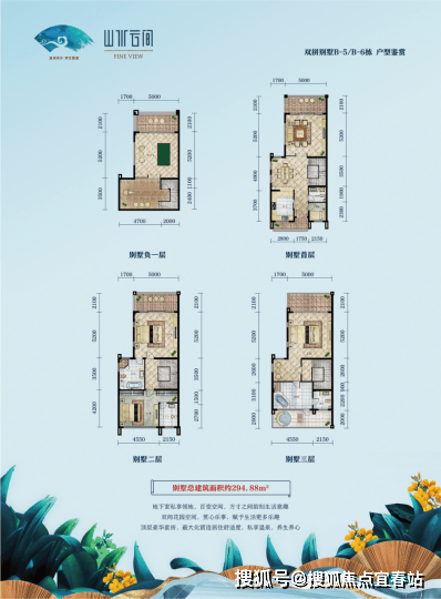 B 双拼:235-241㎡,赠 57-88㎡负一层,花园 80-350㎡,398-721 万