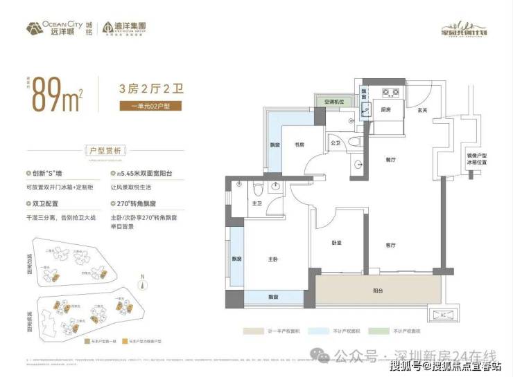 位于平湖远洋城,加推新地块(城铭家园),现在直接认购,89㎡的3房2厅2卫,120㎡的4房2厅2卫户型,本次开盘折后单价2.56万/㎡起,总价在228-430万/套,预计在2027年6月份之前带全屋华为智能精装交房。