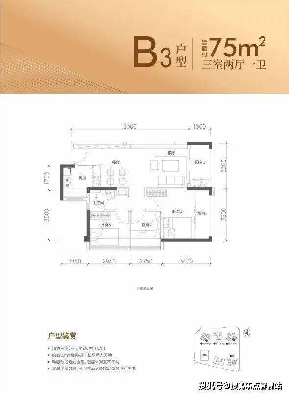 格局:经典竖厅设计,客厅3.5米开间,8.35米进深。