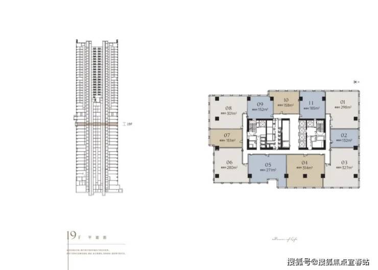 更有 20 层定制户型,均为毛坯交付,支持整层 / 半层出售,包括 651.57㎡、767.57㎡、697.49㎡、442.16㎡等超大尺度空间,为企业总部、高端私人会所提供专属定制可能。