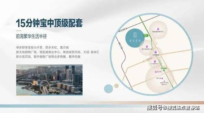 1. 地理占位:湾区西拓战略要地项目傲立于宝安区西乡街道航城大道与宝安大道交汇处,紧邻地铁1号线固戍站(直线约200米),3站直达宝安中心,6站接驳前海核心区,未来可换乘规划15号线(2028年开通)串联西丽高铁枢纽。作为前海8倍扩容区(120.56㎞²)与大湾区“黄金内湾”核心承载地,坐拥腾讯“互联网+”未来科技城、铁仔山国家高新区等千亿级产业矩阵,未来将吸引超10万高净值人才聚集