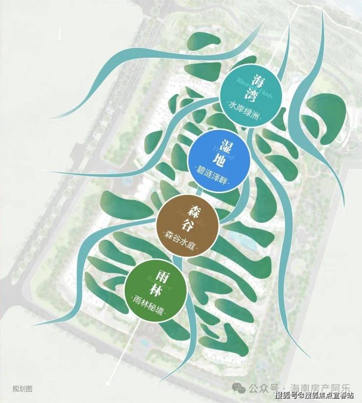 深度融入海湾、岛屿、森谷、雨林、浅滩的海岛度假基因,规划“森谷水庭-碧涟泽畔-水岸绿洲-雨林秘境”四大主题空间,以“溯溪启程 - 浪卷勇进 - 浮翠流音 - 滩涂寻踪 - 丘峦果趣 - 森语回响 - 树台凭眺”的七幕式成长叙事为动线,重构全龄化自然栖居体验。