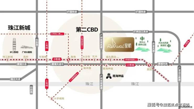 越秀TOD ·星航占地面积约7万㎡,总建面约21万㎡,位于黄埔区黄埔东路 BRT 庙头站旁,地处广州第二 CBD 黄埔临港经济区,现享千亿 CBD 主城商圈配套。