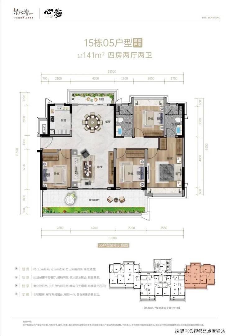 15#05号房、16#01号房、29#01号房141㎡户型,四房两厅两卫