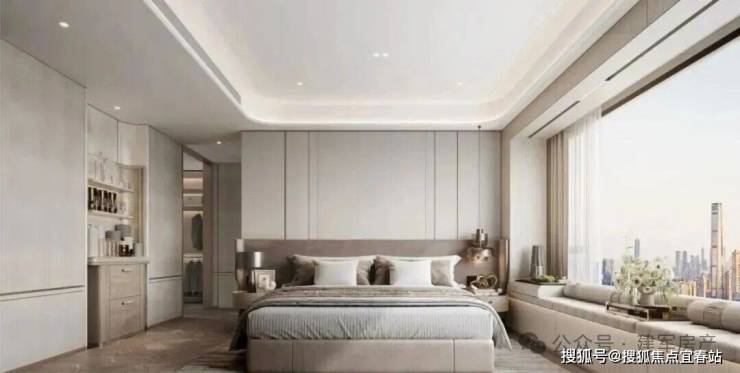 主卧套间实现惊艳三面采光,转角飘窗构筑约270°环幕瞰海视界,全明浴室让人心安。