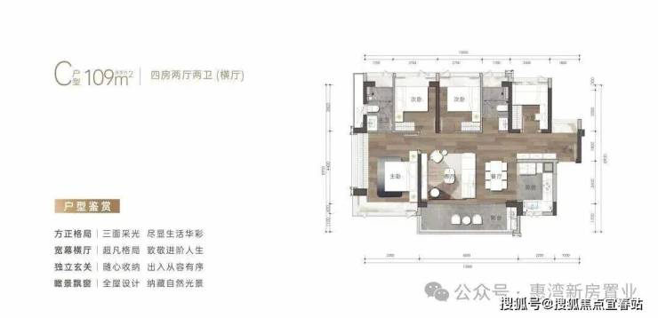 建筑面积约109㎡户型-4房2卫(横厅)