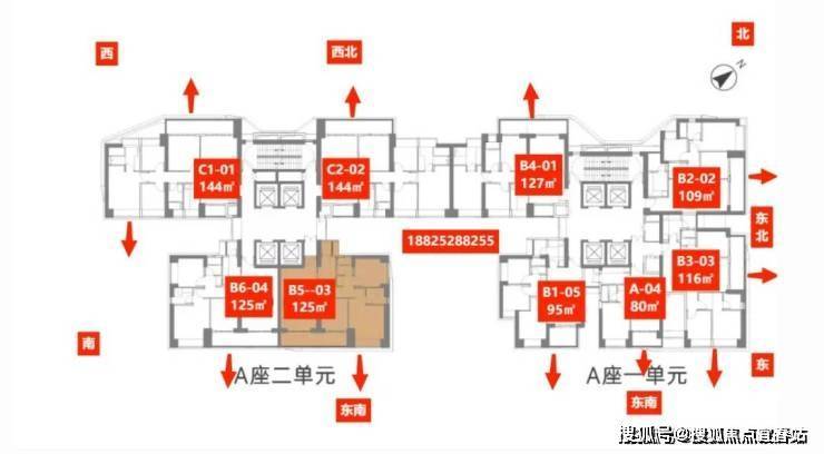 住宅梯户比:一单元四梯五户、二单元四梯四户