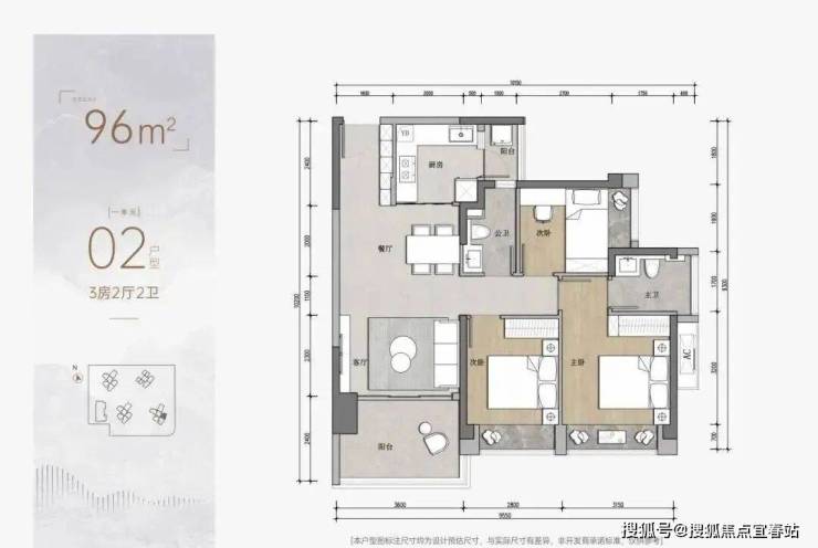 3房为97平3房2卫的户型