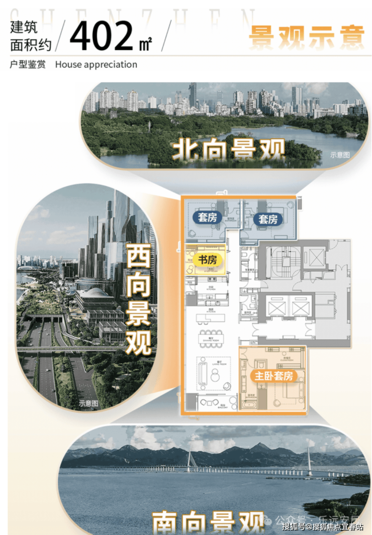 项目南向永无遮挡跨海视野,尊享深圳湾17公里滨海风情,推窗见海.