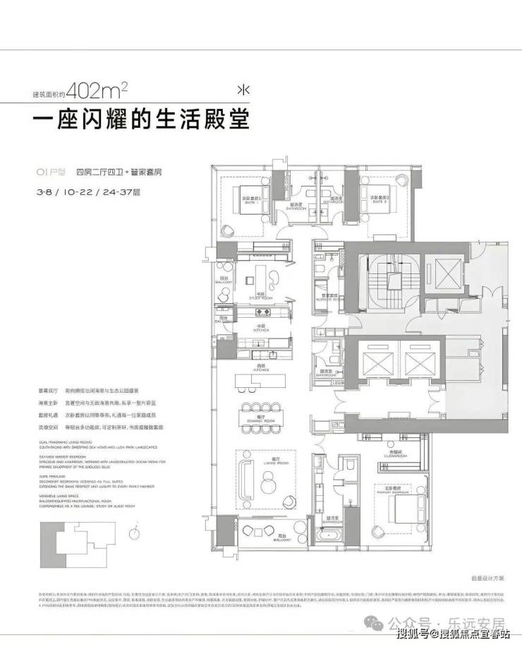 · 中区(12-37层):304-402㎡户型,均价约14.1万/㎡