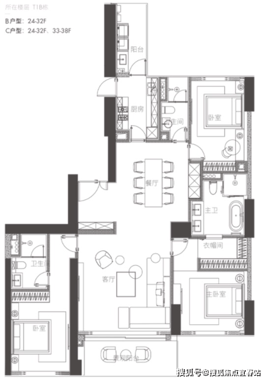 02户型 约230㎡ 三房两厅三卫03户型 约230㎡ 三房两厅三卫(02、03镜像对称)