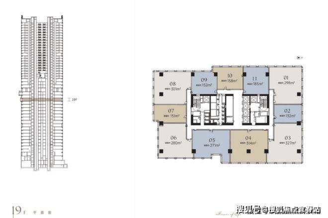 项目总建筑面积约 25 万平方米,由两座 200 米级超高层双塔组成:东塔为自持办公和租赁,西塔为高端公寓出售,总户数仅 284 户,稀缺性不言而喻。层高设计极具诚意 ——3 至 25 层为 4.5 米,26 至 47 层为 3.6 米,开阔空间感远超同类型产品。