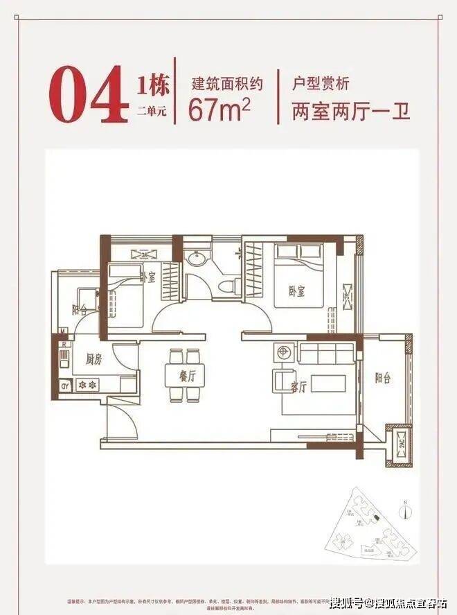 朝向与布局:东南朝向,片区内唯一在售两房户型,空间方正紧凑,动静分区合理。