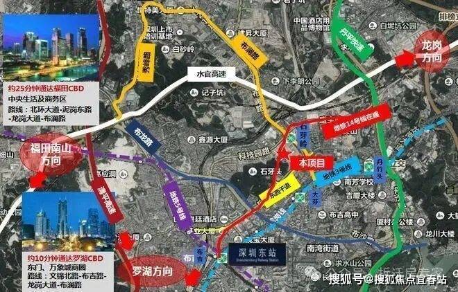 项目距14号线(已通车)石芽岭站直线距离约600米,1站达深圳东站/2站达罗湖/3站达福田,通达时代湾区