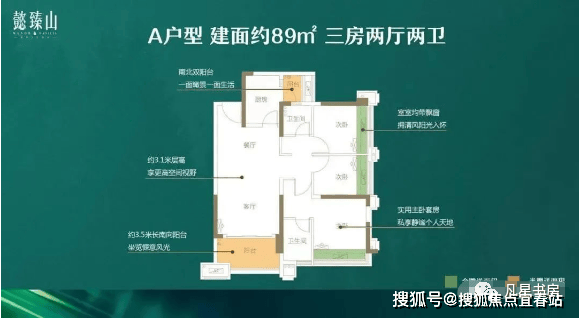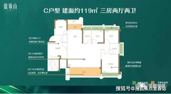 ◎ 匠心打造约 89-119 ㎡轻奢墅居,户户南北朝向,瞰山揽园。约 119 ㎡王牌户型,层高 3.2 米,打破市面 2.8米的常规高度,进一步向上拓展豪宅的居住、视觉体验。更配备一梯一户