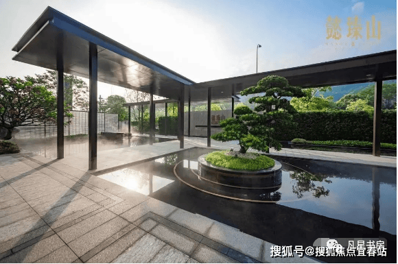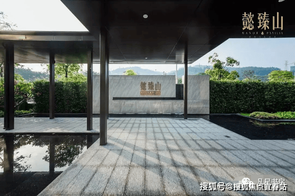 ◎ 懿臻山将寸土寸金的土地资源归还于自然,仅 1/5 的土地上建造房子。项目建筑密度仅为 18.91%,园林绿化率高达 44%,已达国际别墅级人居标准。园林景观概念设计灵感来自本土岭南水之乡的礼序文化与世外桃源的生活憧憬,以小桥水流、景墙为蓝本,营造隔绝喧嚣大隐于市的画境生活。