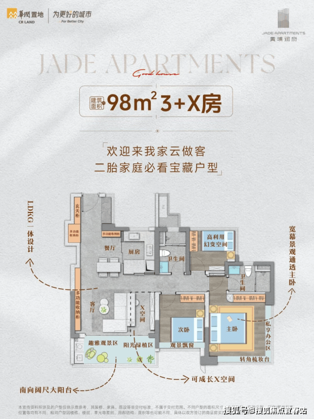 ✨建面约98㎡ 可成长3+X房,二胎家庭福音