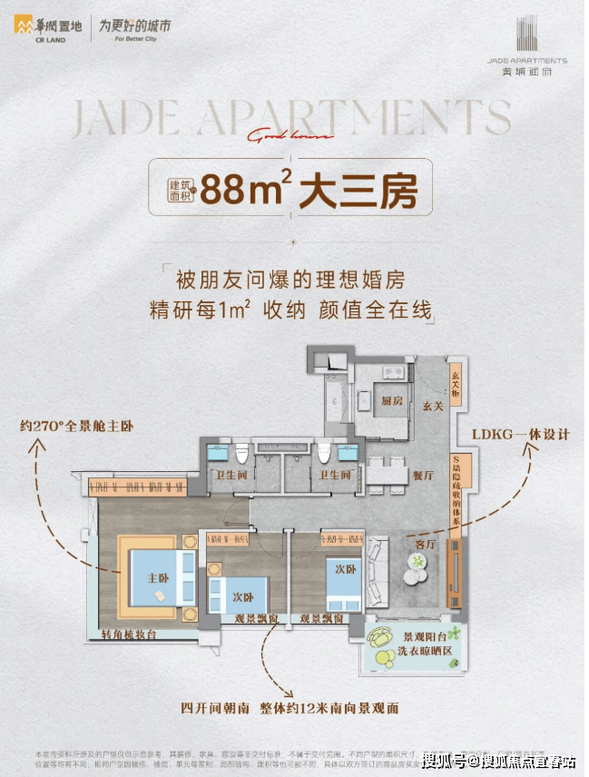 新规户型让人疯狂心动~请直接列入梦中情房✨建面约88㎡竟然能做到正宗大三房