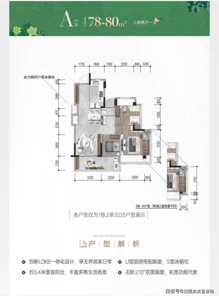 78㎡3房1卫:总价340-390万/套,单价4.3-5万/㎡;