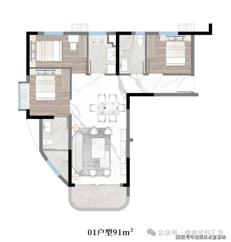 豪华精装交付建筑面积约 78㎡-86㎡-91㎡-101㎡-110㎡二至三房,全新住宅现楼,豪华装修交付,灵动空间设计,合理布局用心打磨每处细节,让生活变成一种享受01户型:约91㎡,三房两厅两卫带主套