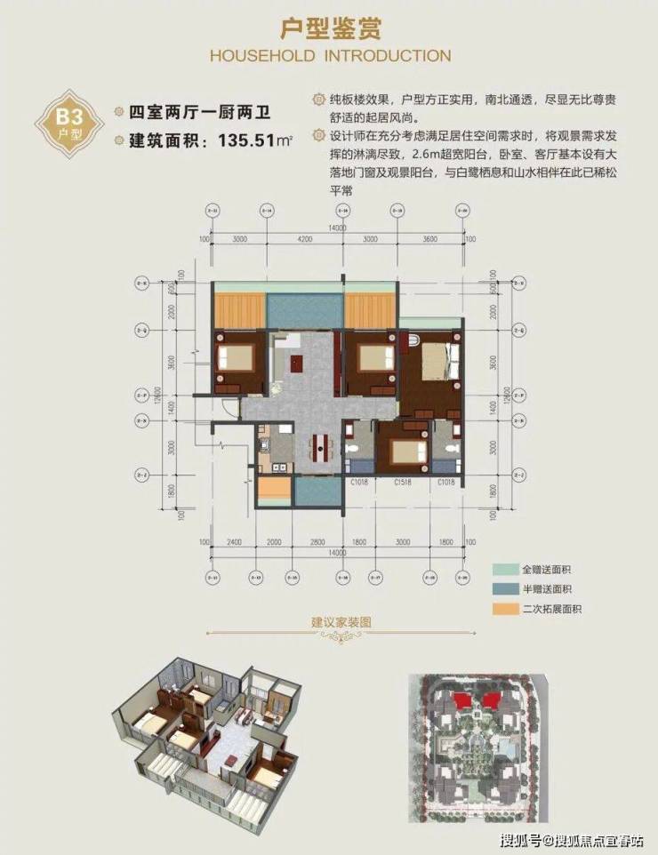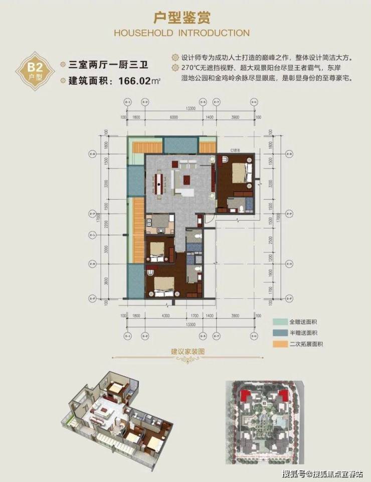 2.设计师在充分考虑满足居住空间需求时,将观景需求发挥的淋漓尽致,2.6m超宽阳台,卧室、客厅基本设有大落地门窗及观景阳台,与白鹭栖息和山水相伴在此已稀松平常。