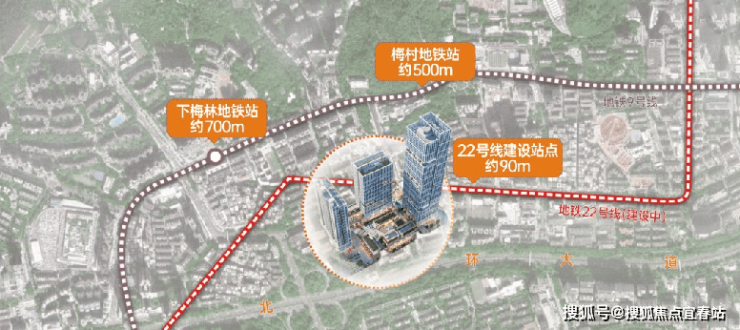 北环大道旁,匹配企业的强昭示性需求,让企业形象始终在前沿。位于22号线(建设中)地铁口,距9号线梅村站约500米、下梅林站约700米,高效通行,便捷办公。