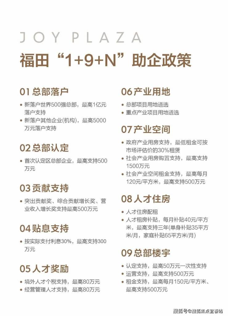 福田助企政策:“1+9+N”政策,福田区产业高质量发展,针对进驻企业规模可一事一议。