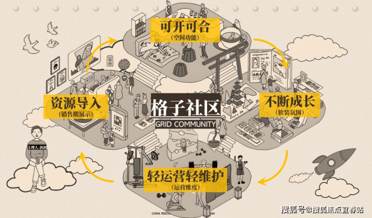 自带会所,会所经营项目功能:全龄化润心社【会所】,涵盖八大主题:轻氧训练室、多巴胺健身、无限商店、配套盒子、阳光长廊、吉山小座、创习书屋、灵感剧场。