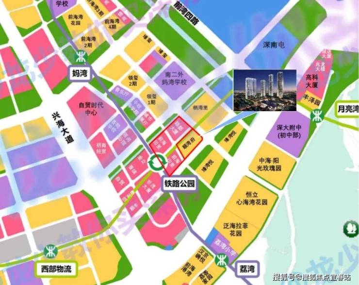 颐湾府是深国际智汇港先期项目的组成部分之一,位于妈湾19单元怡海大道与妈湾一路交汇处,属于5号线铁路公园站地铁上盖项目。