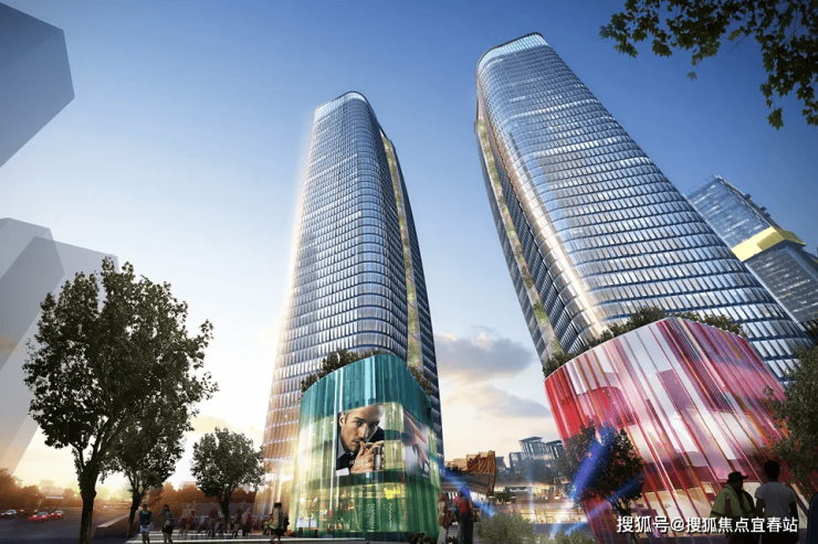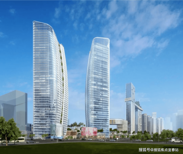 地标:双子星门户地标姿态和形象,绿色、智能化总部办公