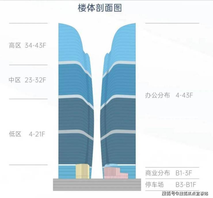 层数:地上43层,地下3层(办公4~43层,商业-1~3层)